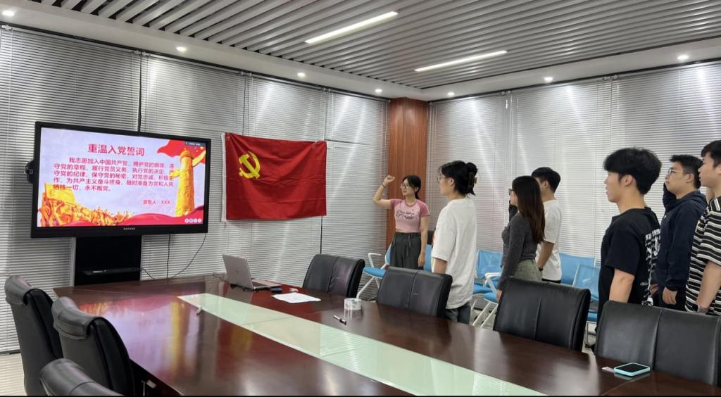 研究生党支部在3号组团楼A1202开展“迎七一、学党章、重温入党誓词”主题党日活动。活动由支部书记朱文晶主持。全体党员参加。