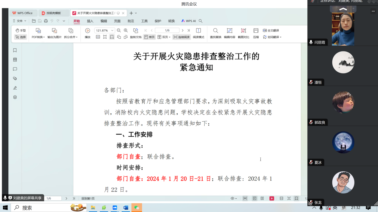 紧急组织开展线上安全排查整改会议,闫丽霞副书记,潘恒副院长,学院研究生导师等参加会议。