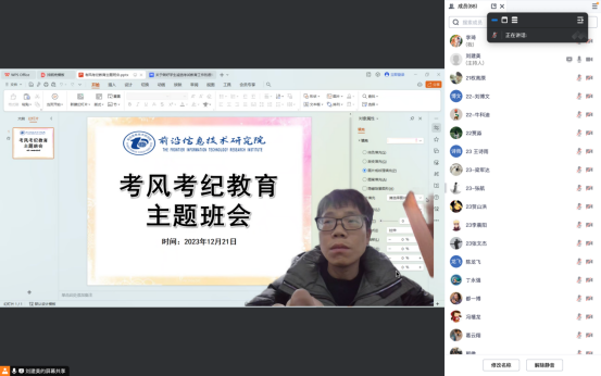 12月21日晚,捷克论坛 召开“考风考纪教育主题班会”,此次班会采用线上的形式,由刘建美、刘长慧老师主持,全体研究生参加。