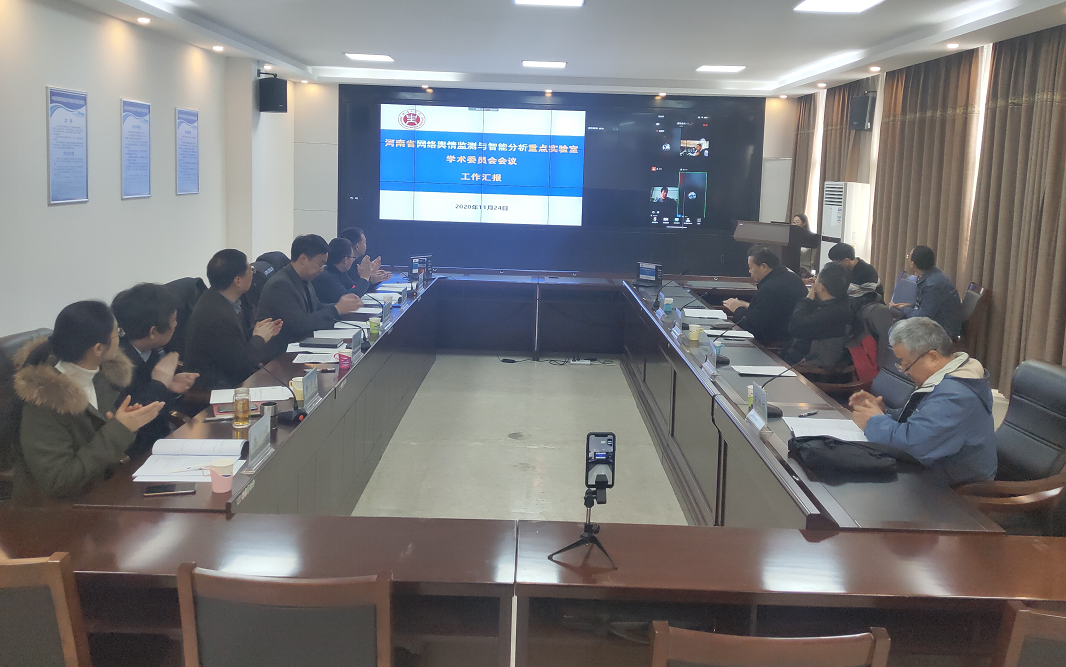 会上,刘洲峰向出席线上、线下会议的各位领导及专家代表致以热烈欢迎并简要介绍了学校的基本科研情况。他谈到,学校大力支持科研工作,近年来在人才建设、科研工作等方面都取得了不错的成果,承担了多项国家级重点研发项目并屡次获奖,入校经费逐年增加,在疫情影响下也稳中有升。学校将进一步规范学术行为,完善学术治理体系,促进学校科研工作更好发展。河南省网络舆情监测与智能分析重点实验室主任郑秋生教授从科研工作、平台建设、人才培养、学术交流、社会服务等方面展开工作汇报和开放课题指南汇报。