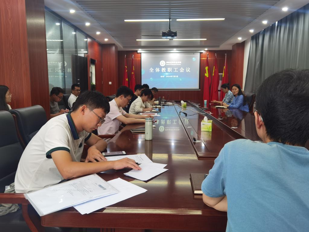 在3号组团楼B1211会议室召开了2024年春季学期期末全体教职工大会。会议由党总支副书记闫丽霞主持。