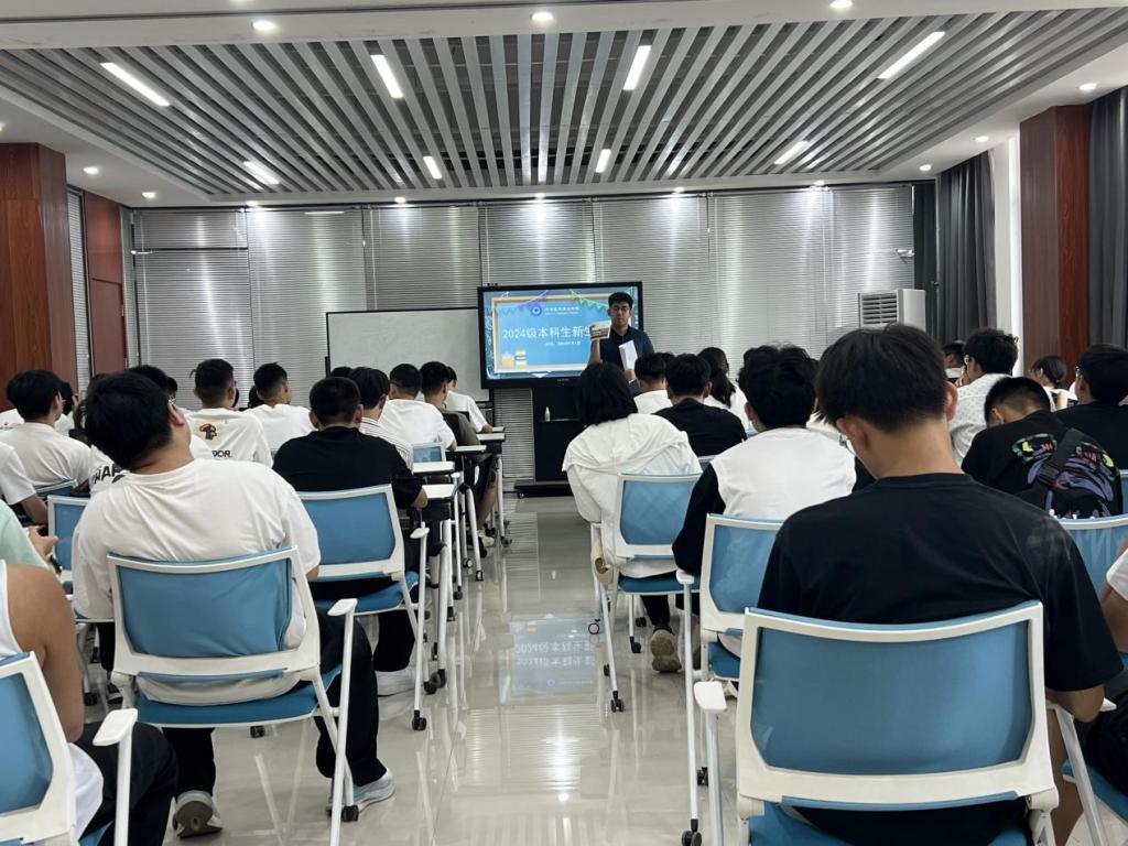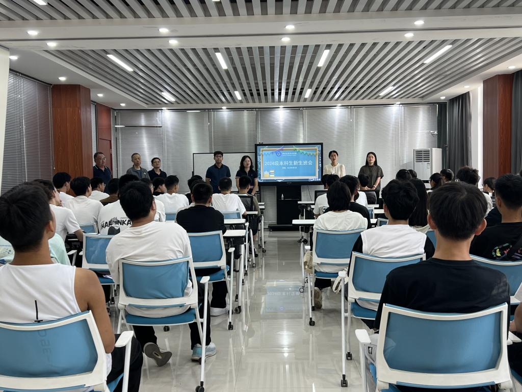 于9月1日上午走访了新生宿舍,下午在三号组团楼A1208,召开了2024级入学第一次主题班会,本次活动由学院党总支书记闫丽霞、执行院长潘恒、学院副书记、副院长邢颖、辅导员郭政良、班主任张龙、教师代表李向东、崔平非及全体2024级新生共同参与。