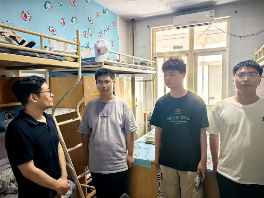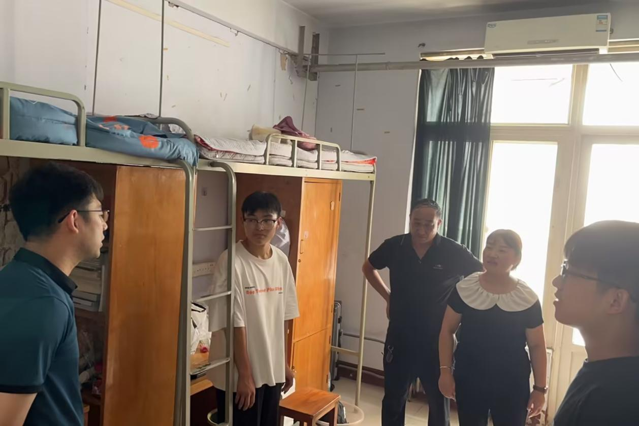 学院副书记、副院长邢颖、辅导员郭政良和班主任张龙深入学生宿舍,看望报到新生,并与学生家长互相交流,了解家庭情况,关心同学们的需求,及时解决新生入校后宿舍中存在的问题。学院副书记、副院长邢颖嘱咐同学们尽快调整状态适应大学的学习及生活,保持良好的宿舍卫生和生活习惯,注意用电安全和防范电信网络诈骗,营造安全稳定积极向上良好宿舍氛围。