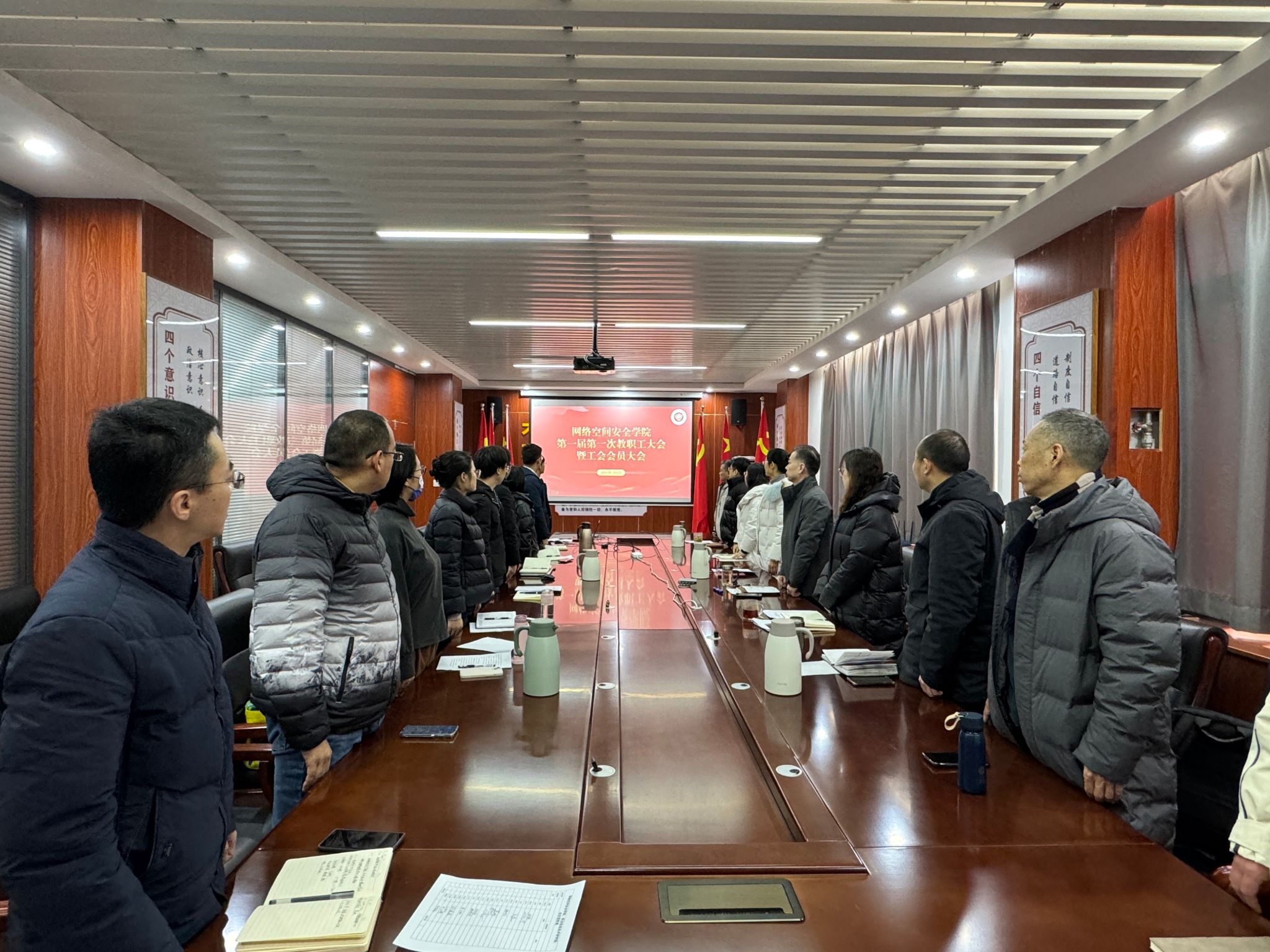 在B1211会议室举行了学院第一届第一次教职工大会暨工会会员大会。学院全体教职工及工会会员参加了此次大会。会议由学院执行院长潘恒主持。