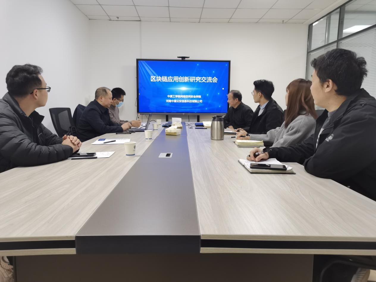 中盾云安公司首席技术官郭仲勇及相关负责人对学院老师的到访表示热烈欢迎,并详细介绍了公司在区块链领域的核心技术、典型应用案例、主要产品体系,以及未来与学院开展深度合作的初步设想。