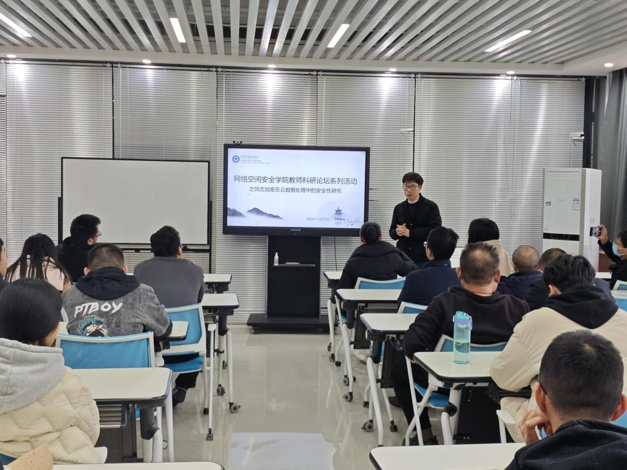 教师刘建美以“同态加密在云数据处理中的安全性研究”为主题,从同态加密技术与云数据安全挑战、同态加密数学基础与特性分析、云计算环境下的数据处理需求等方面,全面阐述了云数据存储和传输过程中所潜藏的风险,同时着重强调了同态加密技术在化解这些风险时所起到的不可或缺的关键作用。
