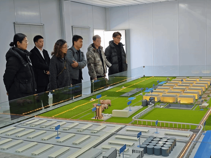 潘恒一行前往牧原内乡综合体,实地考察牧原在智慧养殖、生产组织、产业协同等方面的整体布局与运行模式。潘恒等人随后参观了牧原肉食板块以及中以园及智能科技展厅,详细了解畜产品加工流转环节的数字化管理与质量控制流程及企业在智能装备、生产数据采集、管理平台建设等方面的实践成果。