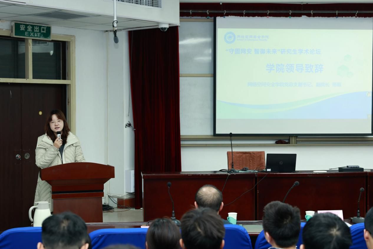 在4号教学楼311报告厅举办了以“守固网安,智御未来”为主题的研究生学术论坛。本次论坛线上与线下同步进行。党总支副书记、副院长邢颖出席论坛并讲话,导师代表及全院研究生、本科生参加了此次论坛。本次论坛由刘长慧主持。