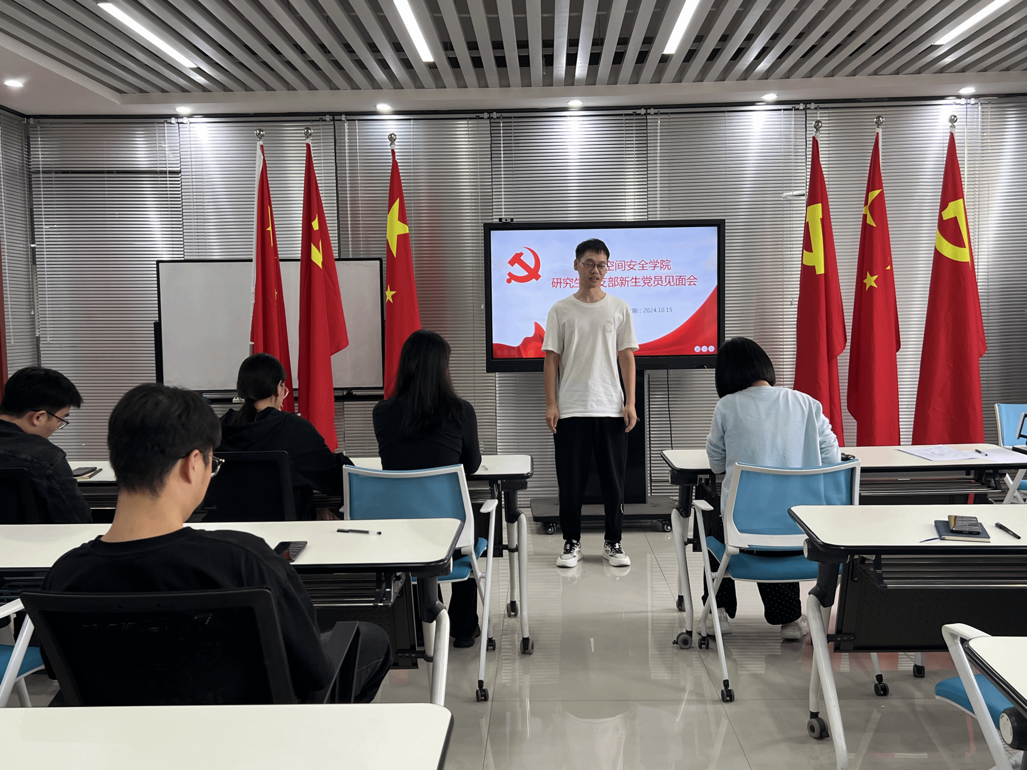 研究生党支部在3号组团楼A1208会议室,开展新生党员见面会暨主题党日活动。研究生党支部全体党员参加,会议由研究生支部书记朱文晶主持。