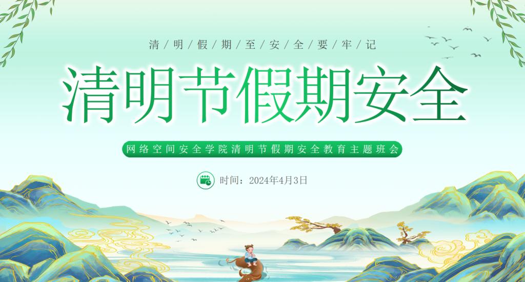 为抓好清明假期管理,落实好学生假期安全教育,进一步提高学生的安全意识。4月3日,网络空间安全学院召开清明节假期安全教育主题班会。班会由辅导员郭政良主持,全体学生参加。