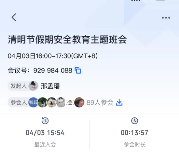 本次清明节假期安全教育班会的顺利开展,不仅使同学们的安全防范,自我保护意识与处理突发事件的能力得到提高,做到防患于未然,也能够促进家校安全防线的建设,为大家安全稳定度过清明假期提供有力的保障。