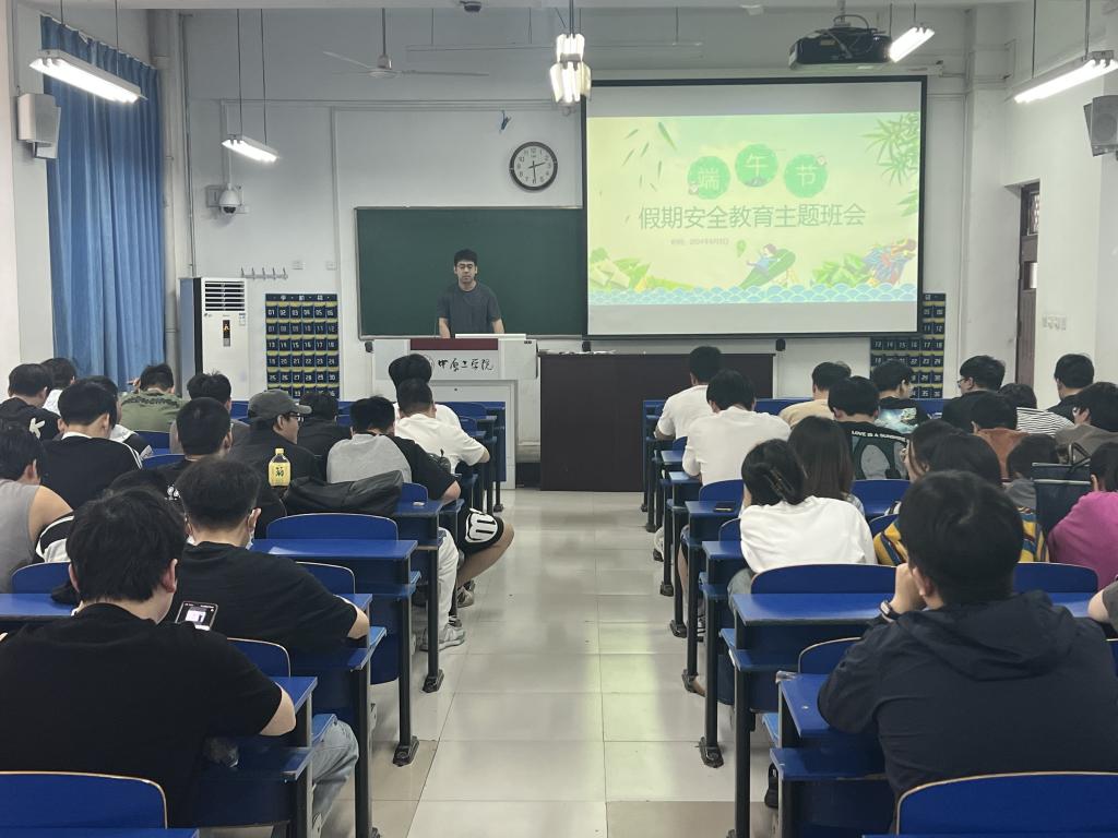 于6月5日下午在2号组团楼111教室召开诚信考试教育暨端午假期安全主题班会。会议由郭政良主持,学院全体学生参加。