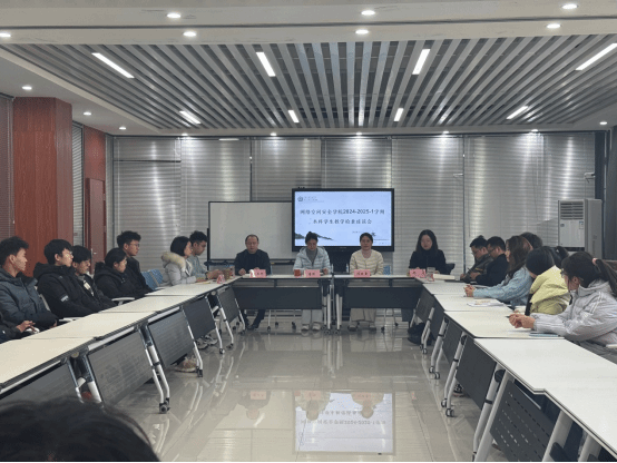 于 12 月 31 日下午 3 时,在 3 号组团楼 A1208 教室召开了 2024 - 2025 学年第一学期本科学生教学检查座谈会。学院党总支书记闫丽霞、执行院长潘恒、教师代表祝卫华、张龙、姚中原、学工办副主任郭政良、教学办副主任朱文晶、研究生代表及本科生代表参加此次座谈会。会议由党总支副书记、副院长邢颖主持。