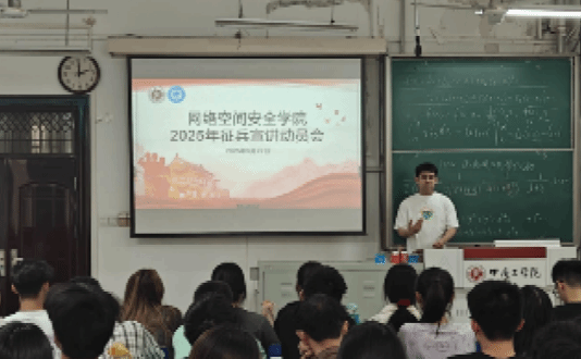 会上,郭政良结合《中华人民共和国兵役法》《征兵工作条例》,以《国家安全法》《网络安全法》为脉络,系统解读强军政策与专业报国的内在联系,介绍了“特招入伍”“直招军官”等政策优势,即硕士及以上学历可免初试直接进入军队技术岗面试,优先配备专项装备研发经费,引导学生在数字战场书写报国华章。