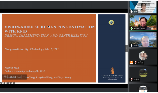 师生做了题为“Vision-aided 3D Human Pose Estimation with RFID: Design, Implementation, and Generalization”的学术报告。讲座由前沿信息技术研究院副院长潘恒主持,前沿信息技术研究院及相关学院师生在线聆听了报告。